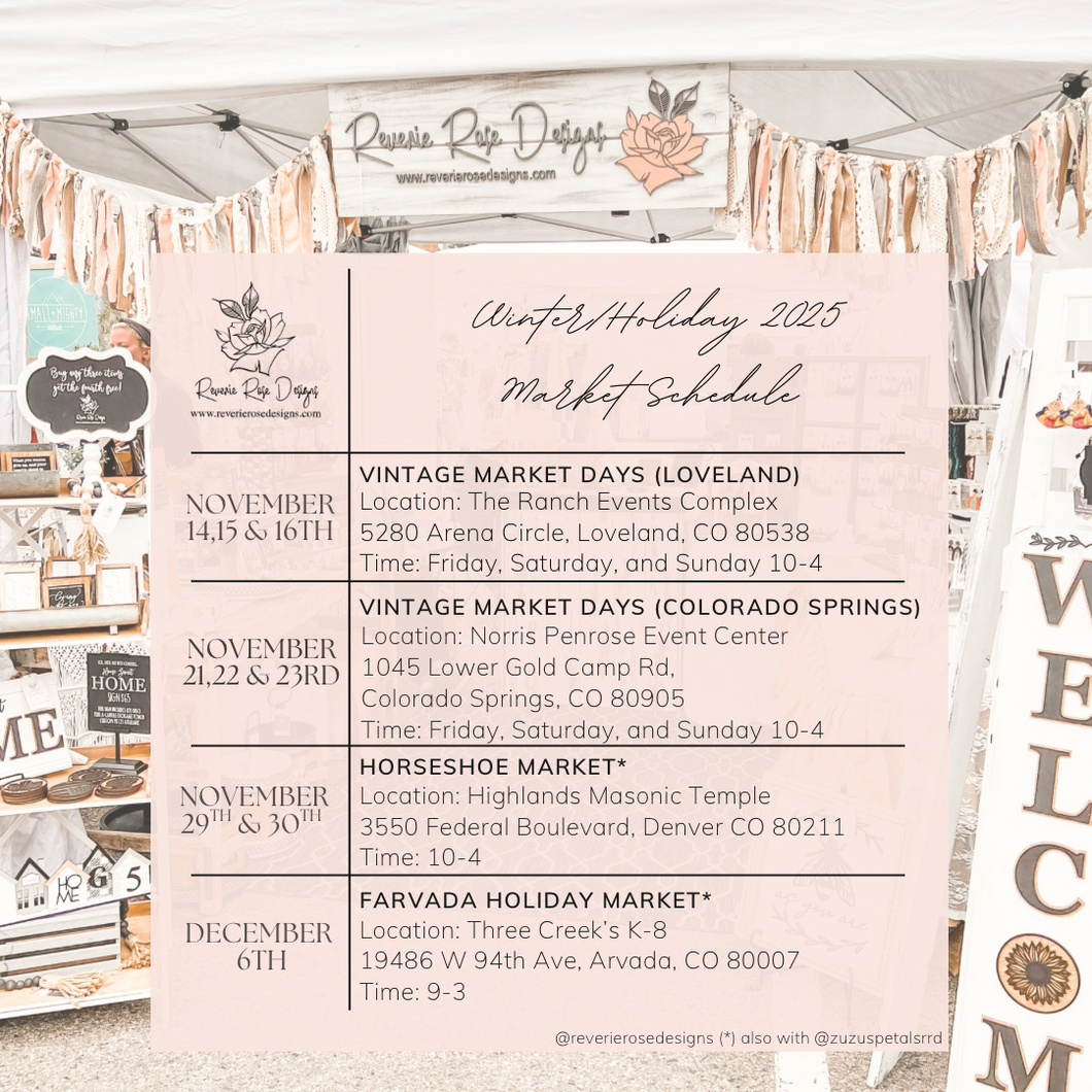 Reverie Rose Designs/Zuzu's Petals Boutique MArket Schedule