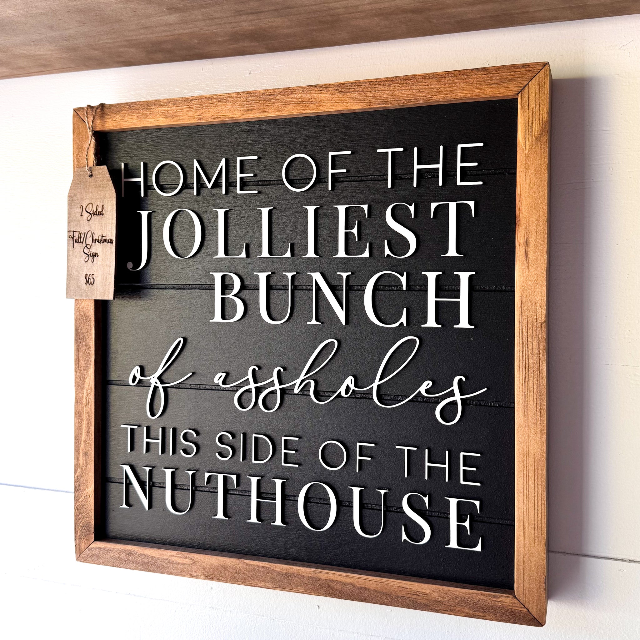 Add a touch of personality to your décor with this stylish 15 x 15” reversible sign. Featuring a natural wood frame and classic black background, it blends seamlessly with farmhouse and boho styles. One side brings playful autumn vibes with nods to pumpkin spice and cozy sweaters, while the reverse offers a cheeky year-round quote. Two looks in one — perfect for mantels, shelves, or gallery walls.
